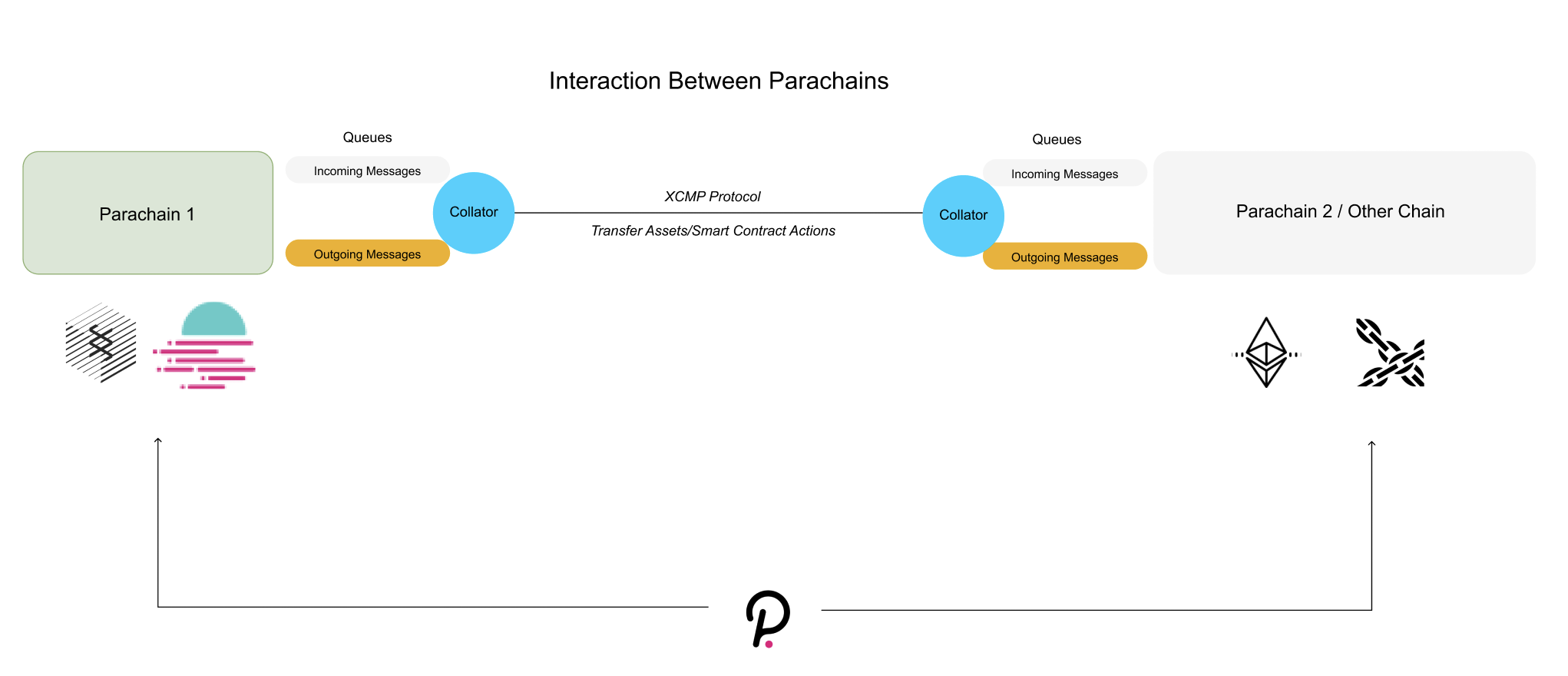 Polkadot defines a low-level integration protocol that can be used to facilitate communication between parachains within the Polkadot network called cross-chain message passing (XCMP), and a way to share trusted logic between chains on the Polkadot network called shared protected runtime execution enclaves (SPREE).